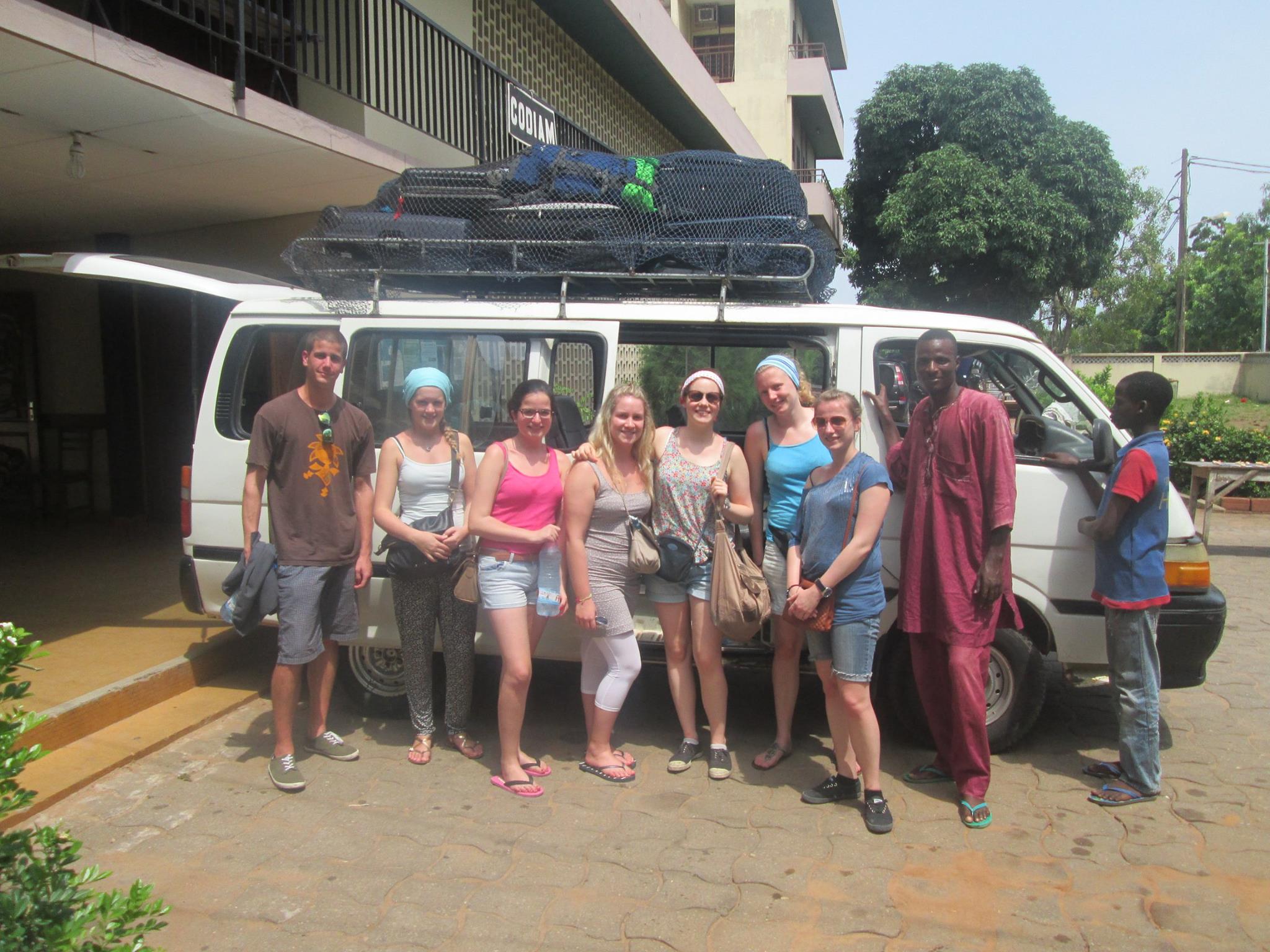 Sinon, l’ambiance est bonne dans notre groupe d’étudiants : quelques fous rires nerveux dûs à la fatigue, la chaleur et les conditions générales (cafards dans les toilettes sèches, moustiques agressifs à profusion, nourriture africaine très épicée à en pleurer, hygiène peu développée, mille et une demandes en mariage, … ). Bref, aventure assurée, Koh Lanta me voilà! Qu’est-ce qu’on se marre quand même! J’attends plus que les danses africaines! (pour les angoissés, pas de panique, je le vis bien 😉 !