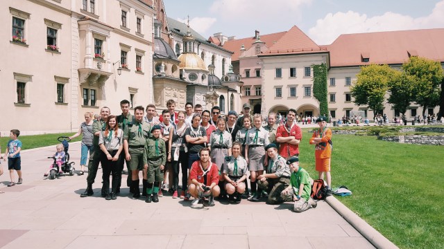 « Aujourd’hui (lire mercredi 15 juillet), visite de Cracovie, sous le soleil, malgré une petite averse. D’abord le château de Wawel, où on a croisé des scouts polonais (qui ont l’air assez stricts dans leurs uniformes quasi-militaires), et puis du quartier juif de la ville. Ce soir on aimerait faire une petite visite guidée sur le thème du « macabre » de la ville, on verra ce que ça donne ! »